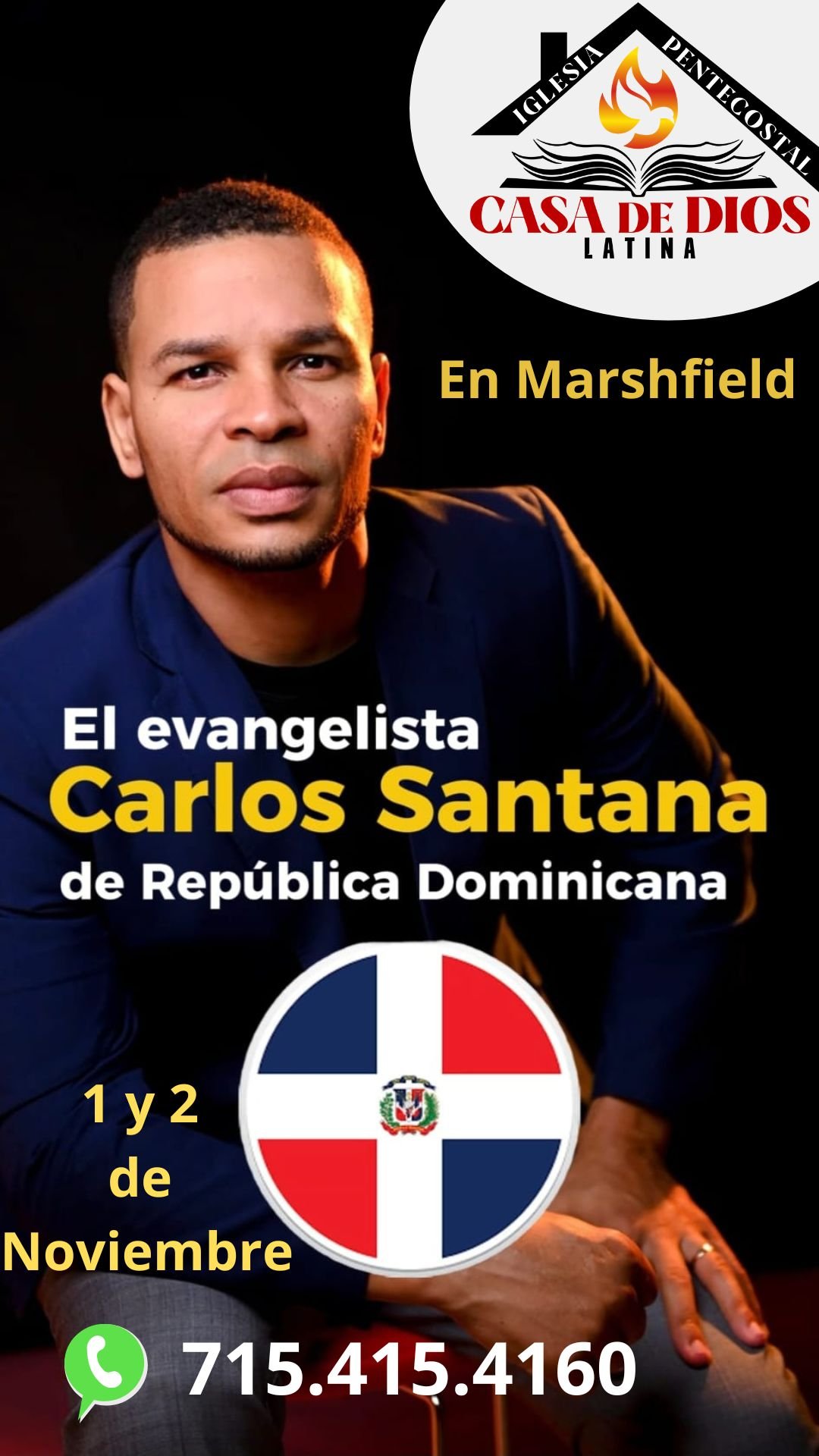 Este 1 y 2 de Noviembre nos visita desde la Republica Dominicana El Evangelista Internacional Carlos Santana, Hombre usado Poderosamente por Dios en los Dones del Espiritu Santo, Ven Y recibe tu Milagro.